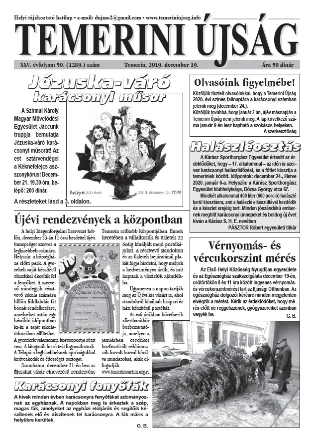 Temerini Újság, 25. évf. 2019. december 19. 50. sz.