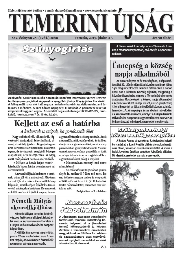 Temerini Újság, 25. évf. 2019. június 27. 25. sz.