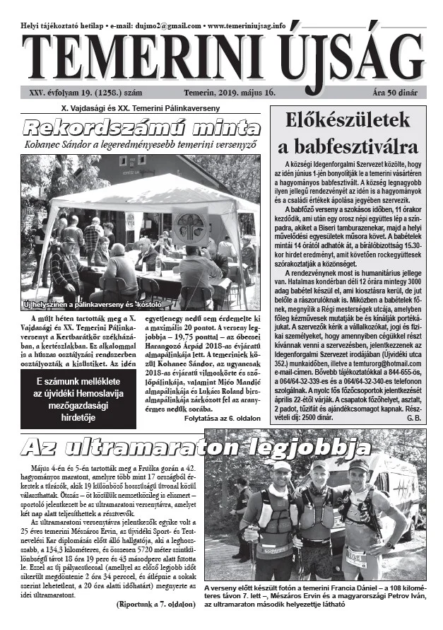 Temerini Újság, 25. évf. 2019. május 16. 19. sz.