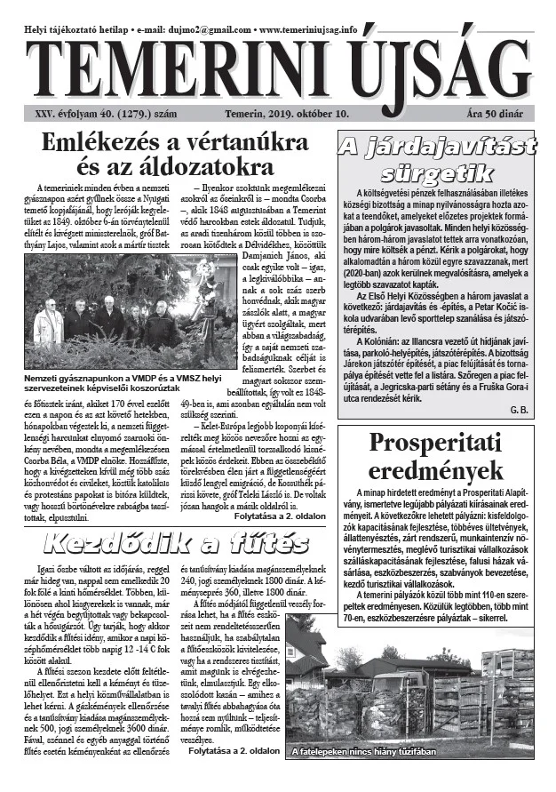 Temerini Újság, 25. évf. 2019. október 10. 40. sz.