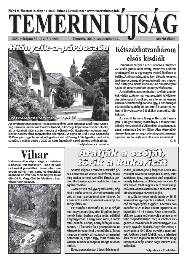 Temerini Újság, 25. évf. 2019. szeptember 12. 36. sz.