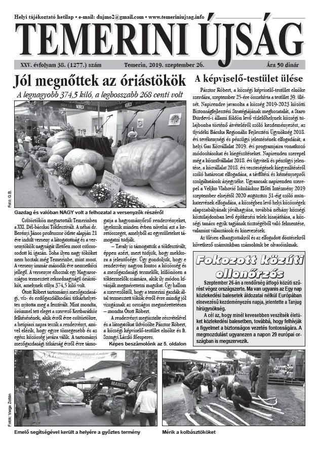 Temerini Újság, 25. évf. 2019. szeptember 26. 38. sz.