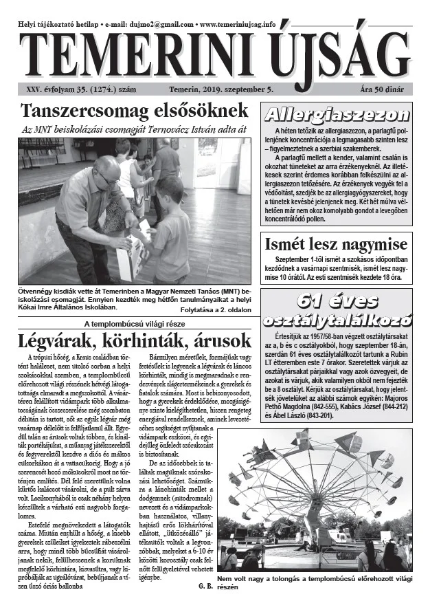 Temerini Újság, 25. évf. 2019. szeptember 5. 35. sz.