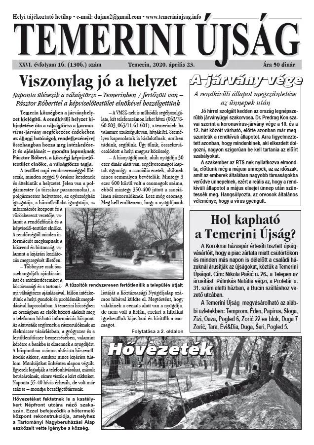 Temerini Újság, 26. évf. 2020. április 23. 16. sz.