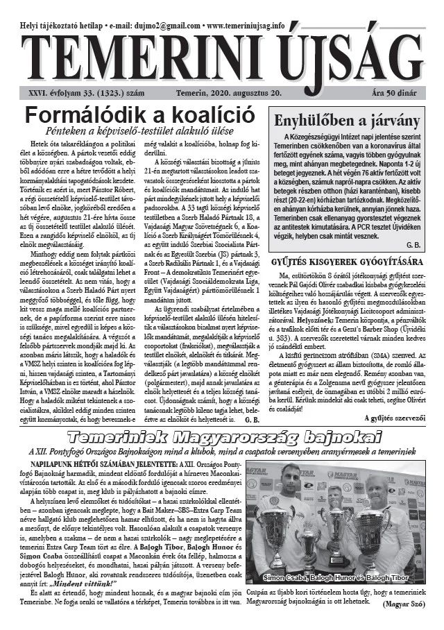 Temerini Újság, 26. évf. 2020. augusztus 20. 33. sz.