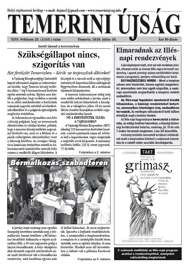 Temerini Újság, 26. évf. 2020. július 16. 28. sz.