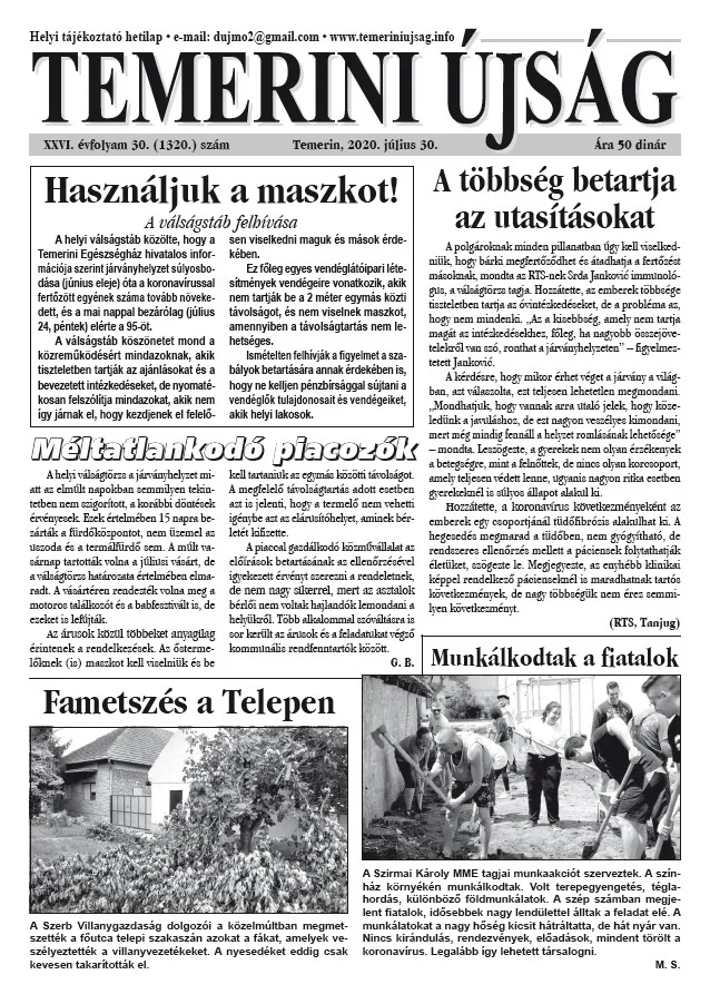 Temerini Újság, 26. évf. 2020. július 30. 30. sz.