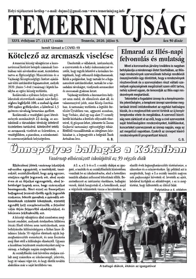 Temerini Újság, 26. évf. 2020. július 9. 27. sz.
