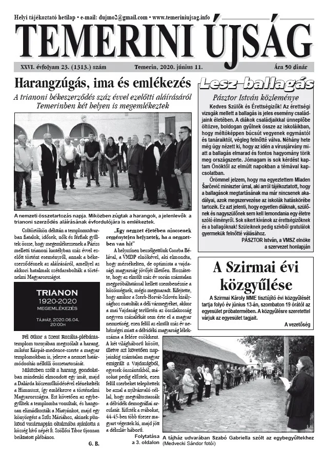 Temerini Újság, 26. évf. 2020. június 11. 23. sz.