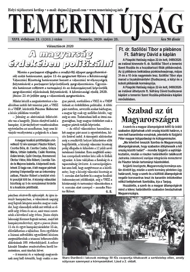 Temerini Újság, 26. évf. 2020. május 28. 21. sz.