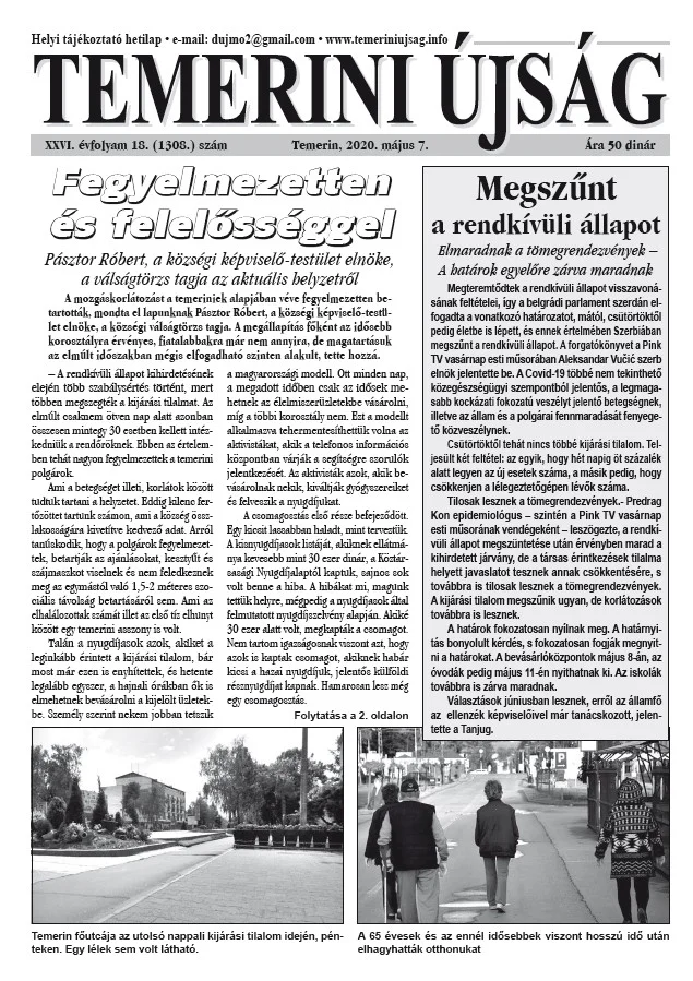 Temerini Újság, 26. évf. 2020. május 7. 18. sz.