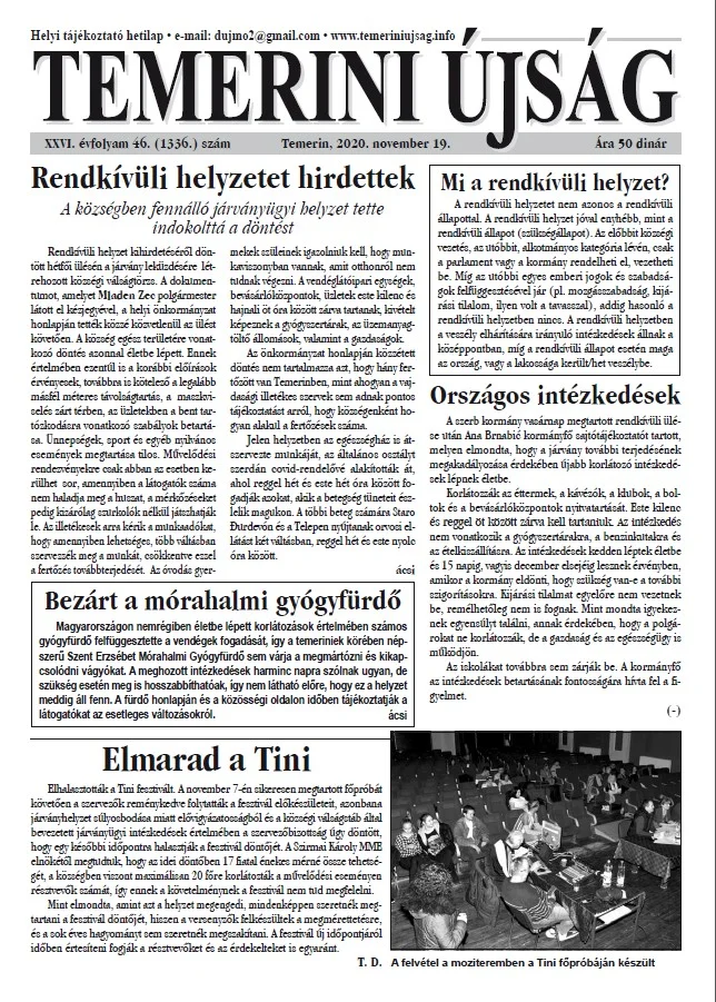 Temerini Újság, 26. évf. 2020. november 19. 46. sz.