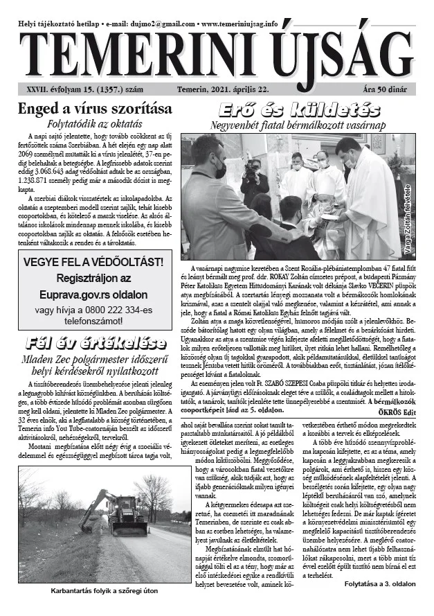 Temerini Újság, 27. évf. 2021. április 22. 15. sz.