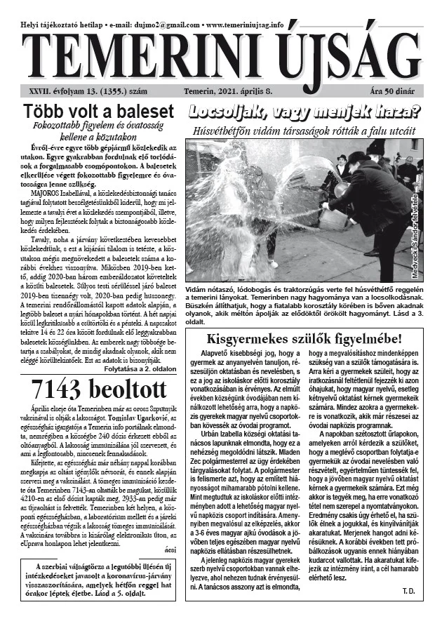 Temerini Újság, 27. évf. 2021. április 8. 13. sz.