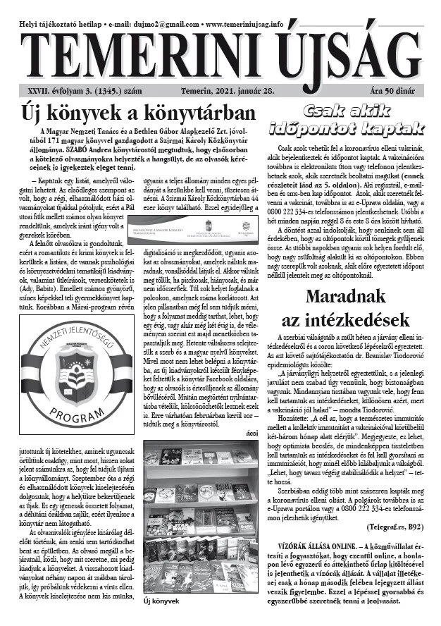 Temerini Újság, 27. évf. 2021. január 28. 3. sz.