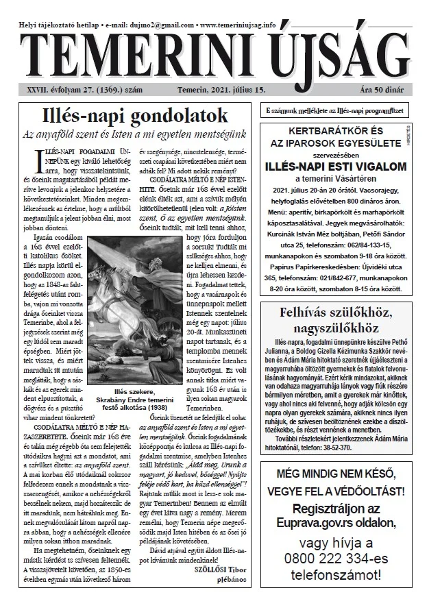 Temerini Újság, 27. évf. 2021. július 15. 27. sz.