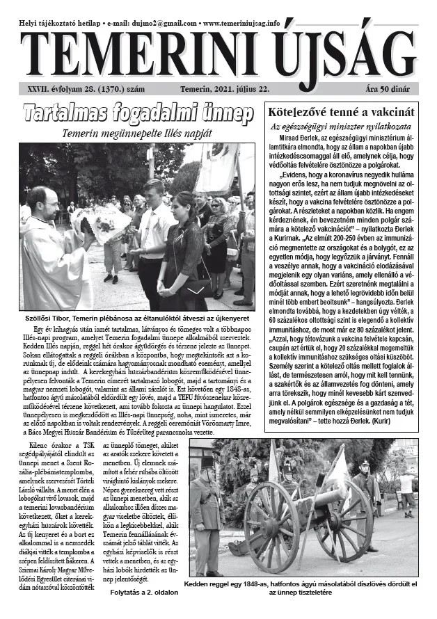 Temerini Újság, 27. évf. 2021. július 22. 28. sz.