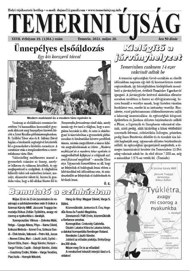 Temerini Újság, 27. évf. 2021. május 20. 19. sz.