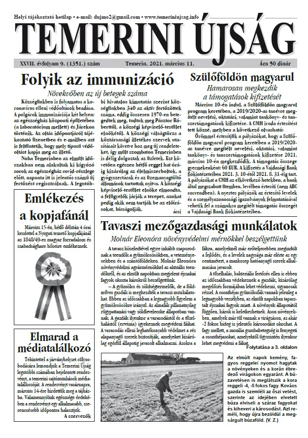 Temerini Újság, 27. évf. 2021. március 11. 9. sz.