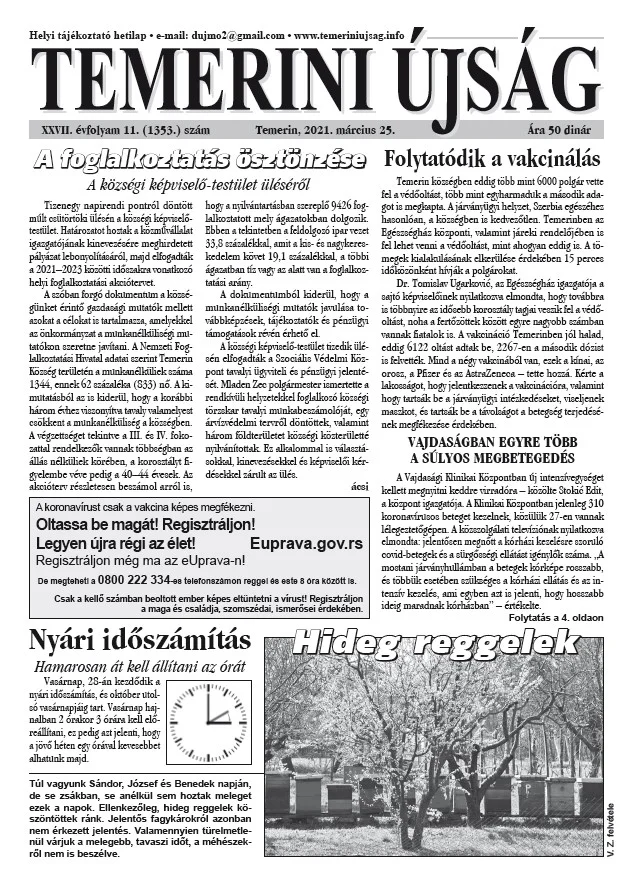 Temerini Újság, 27. évf. 2021. március 25. 11. sz.