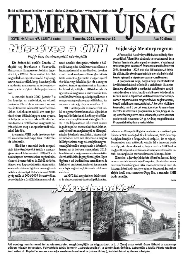 Temerini Újság, 27. évf. 2021. november 18. 45. sz.