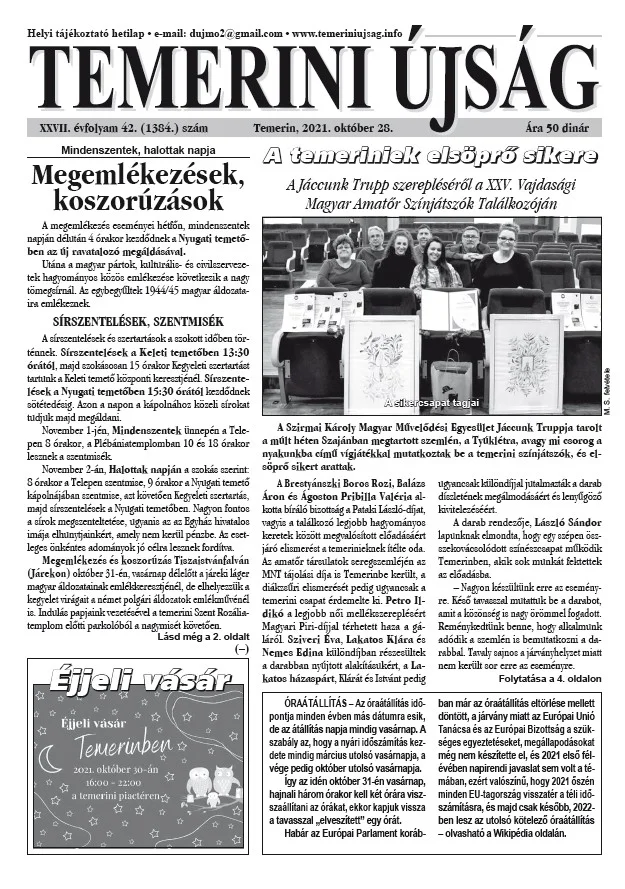 Temerini Újság, 27. évf. 2021. október 28. 42. sz.