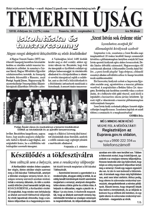 Temerini Újság, 27. évf. 2021. szeptember 2. 34. sz.