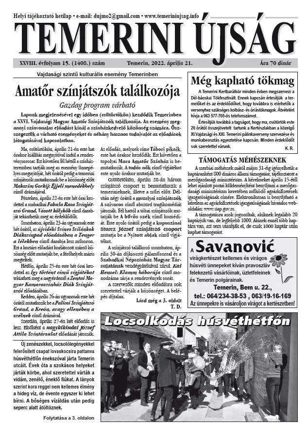 Temerini Újság, 28. évf. 2022. április 21. 15. sz.