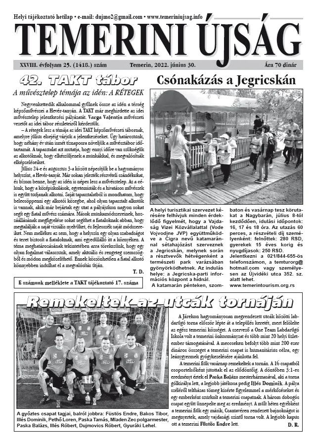 Temerini Újság, 28. évf. 2022. június 30. 25. sz.