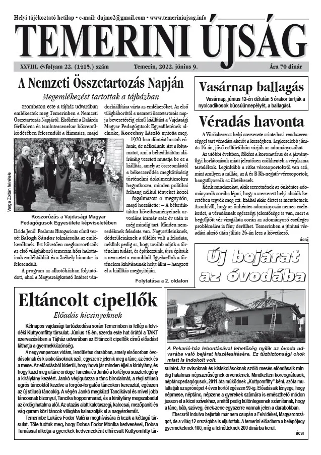 Temerini Újság, 28. évf. 2022. június 9. 22. sz.