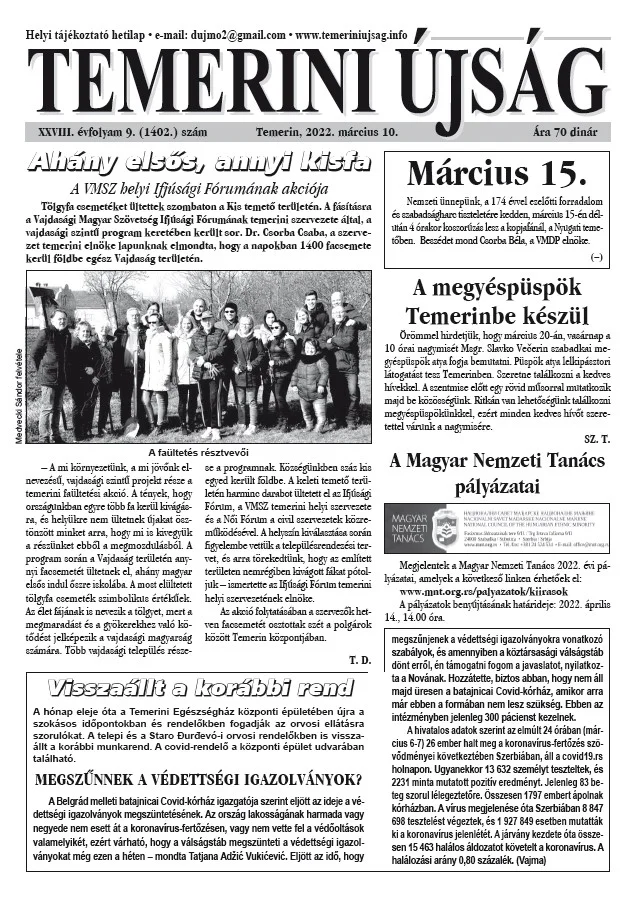 Temerini Újság, 28. évf. 2022. március 10. 9. sz.