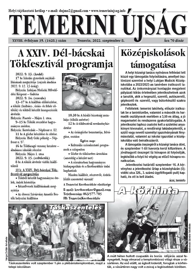 Temerini Újság, 28. évf. 2022. szeptember 8. 35. sz.