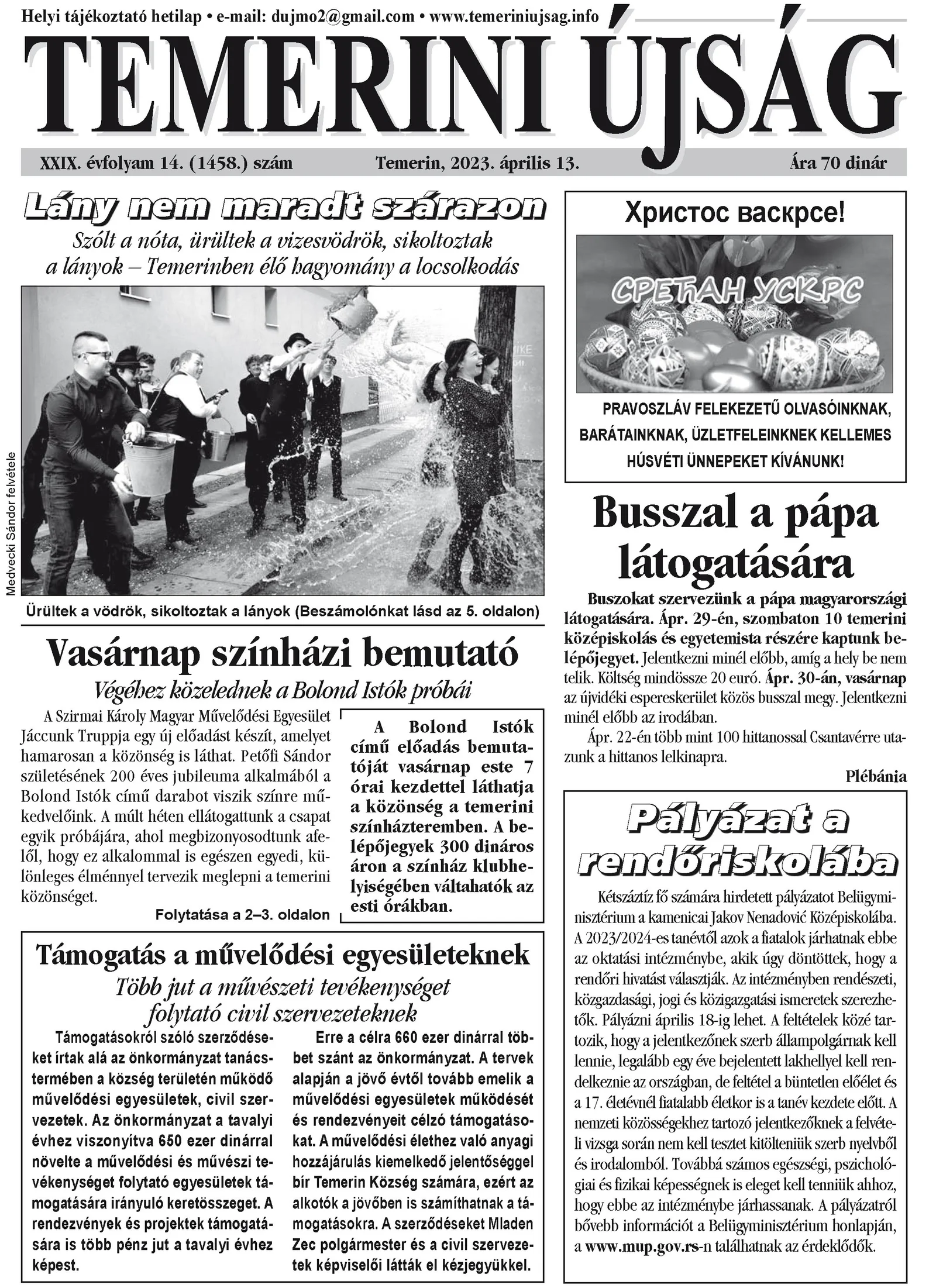 Temerini Újság, 29. évf. 2023. április 13. 14. sz.