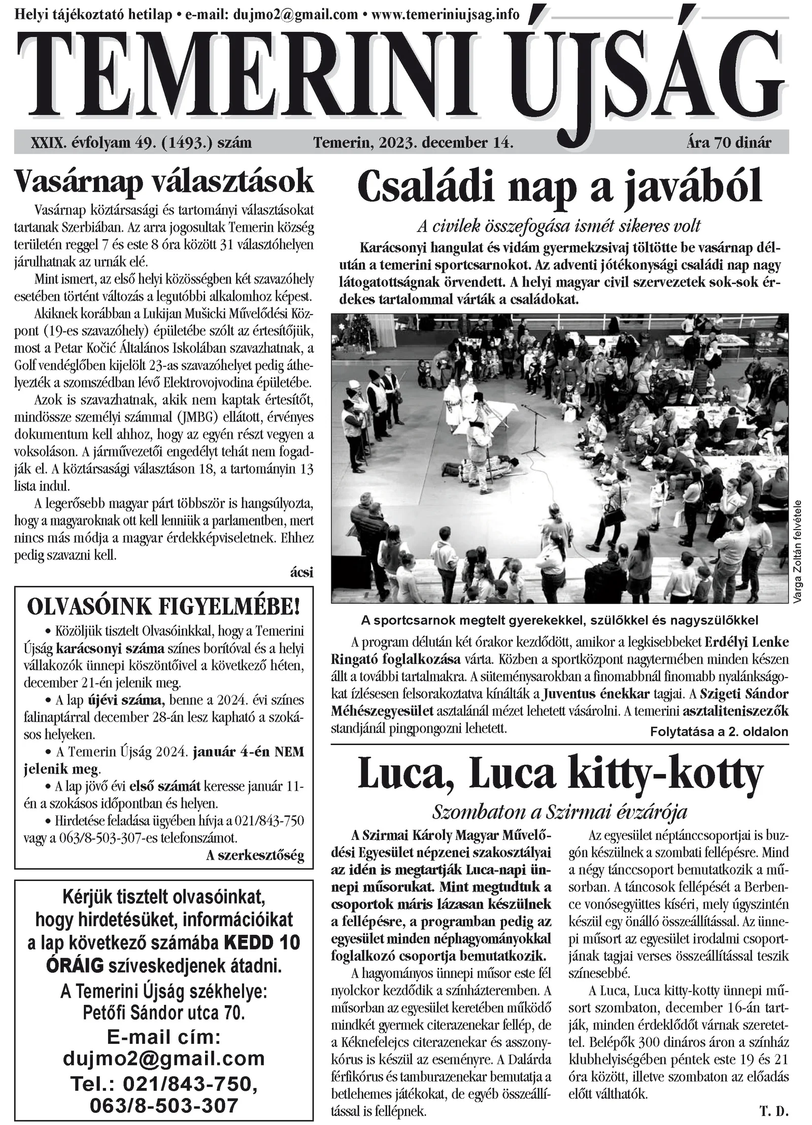 Temerini Újság, 29. évf. 2023. december 14. 49. sz.
