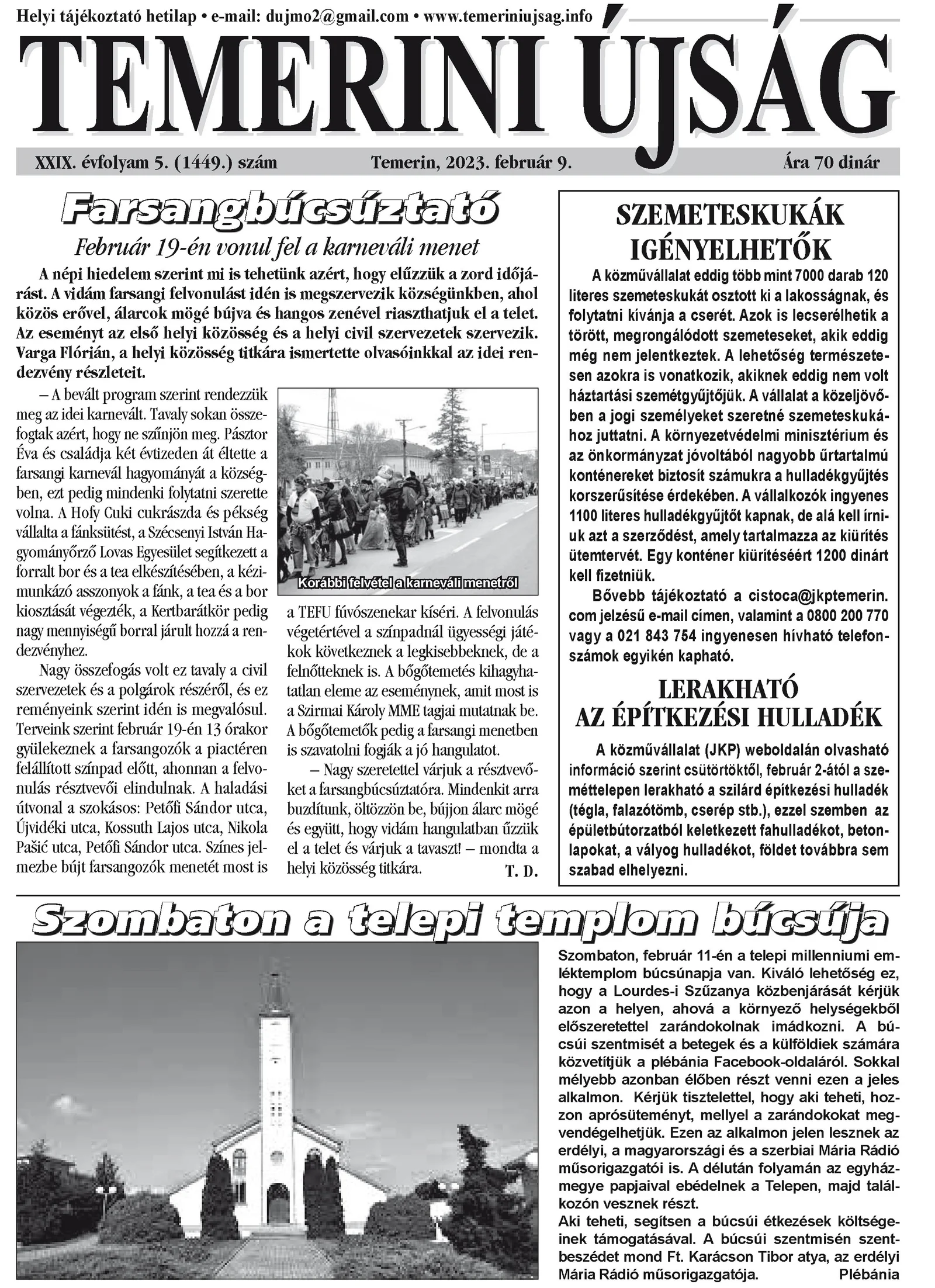 Temerini Újság, 29. évf. 2023. február 9. 5. sz.