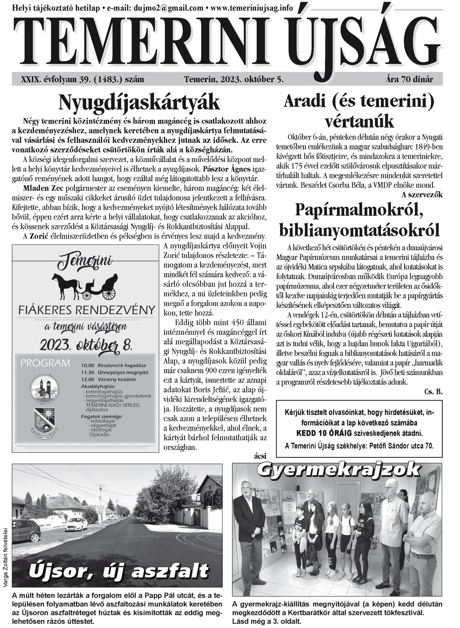 Temerini Újság, 29. évf. 2023. október 5. 39. sz.