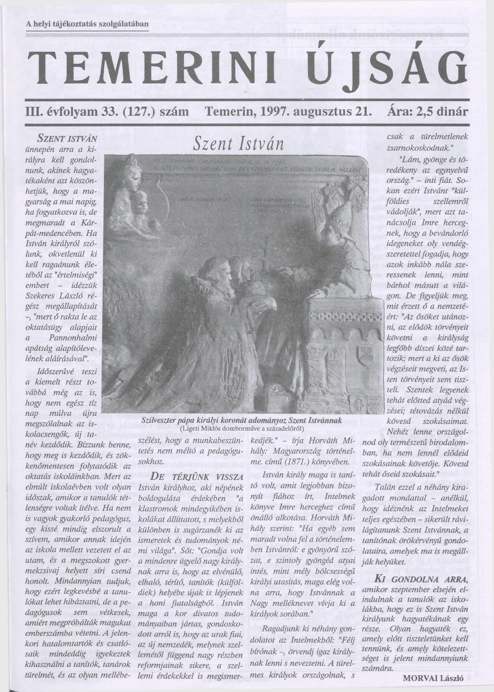 Temerini Újság, 3. évf. 1997. augusztus 21. 33. sz.