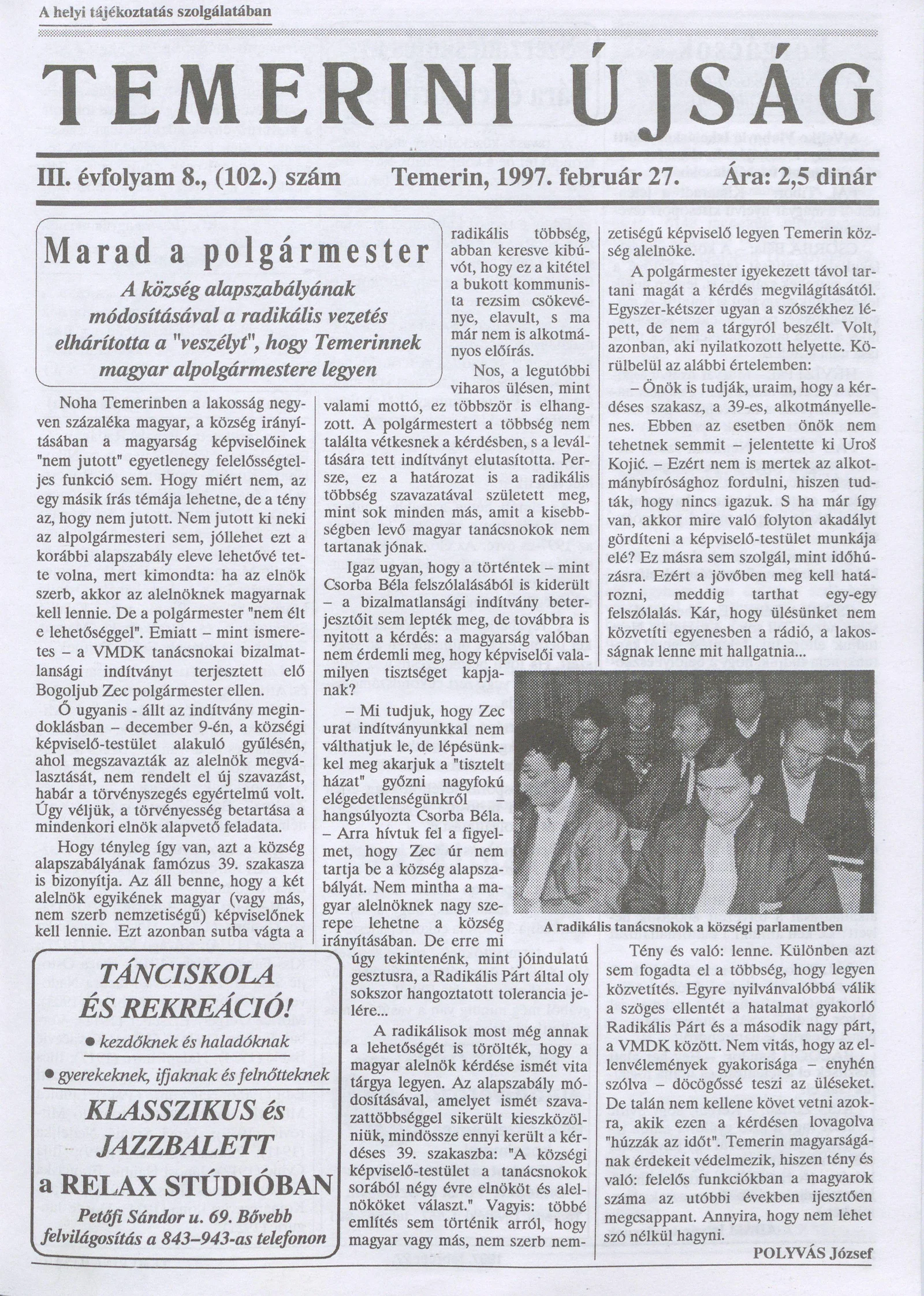 Temerini Újság, 3. évf. 1997. február 27. 8. sz.