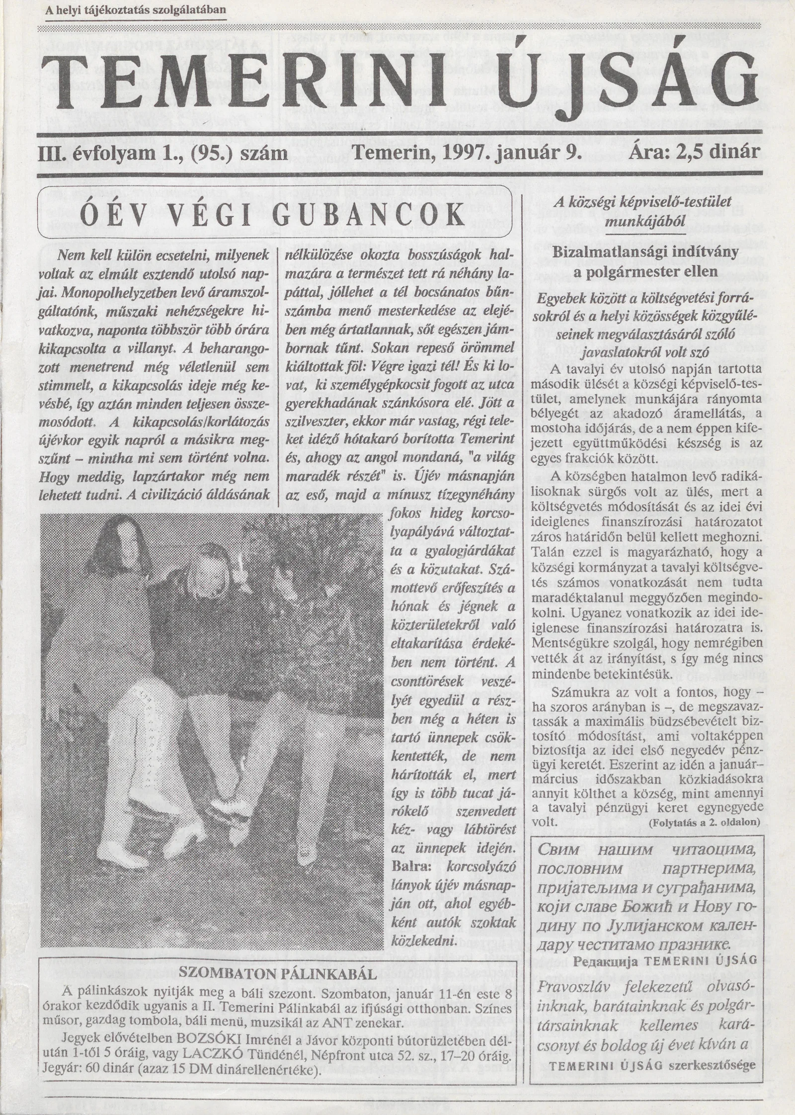 Temerini Újság, 3. évf. 1997. január 9. 1. sz.