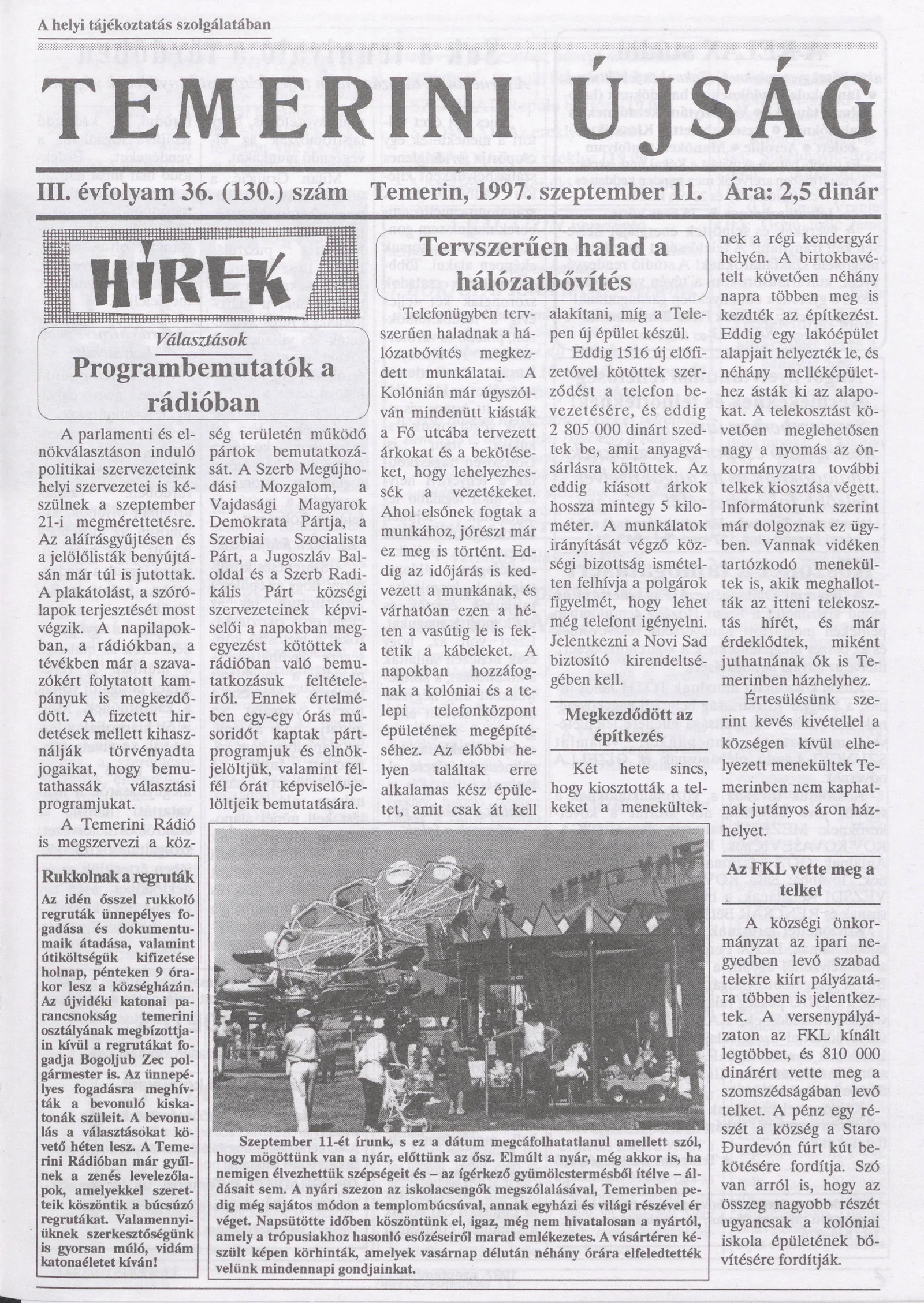 Temerini Újság, 3. évf. 1997. szeptember 11. 36. sz.