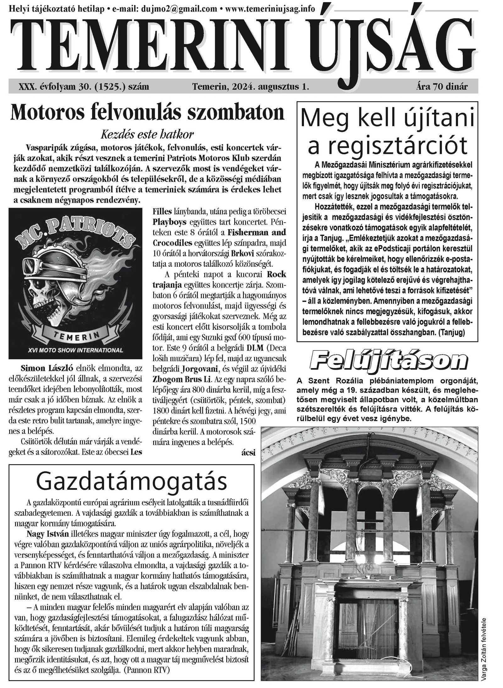 Temerini Újság, 30. évf. 2024. augusztus 1. 30. sz.