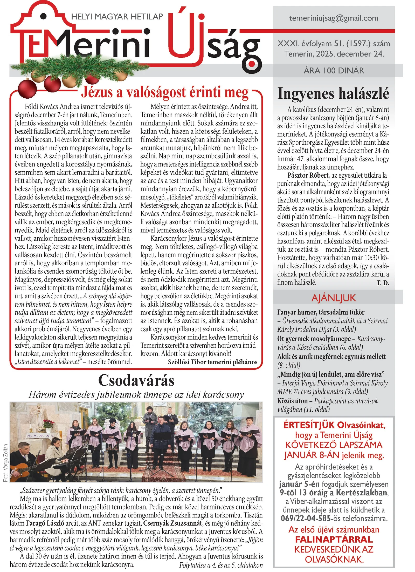 Temerini Újság, 31. évf. 2025. december 24. 51. sz.