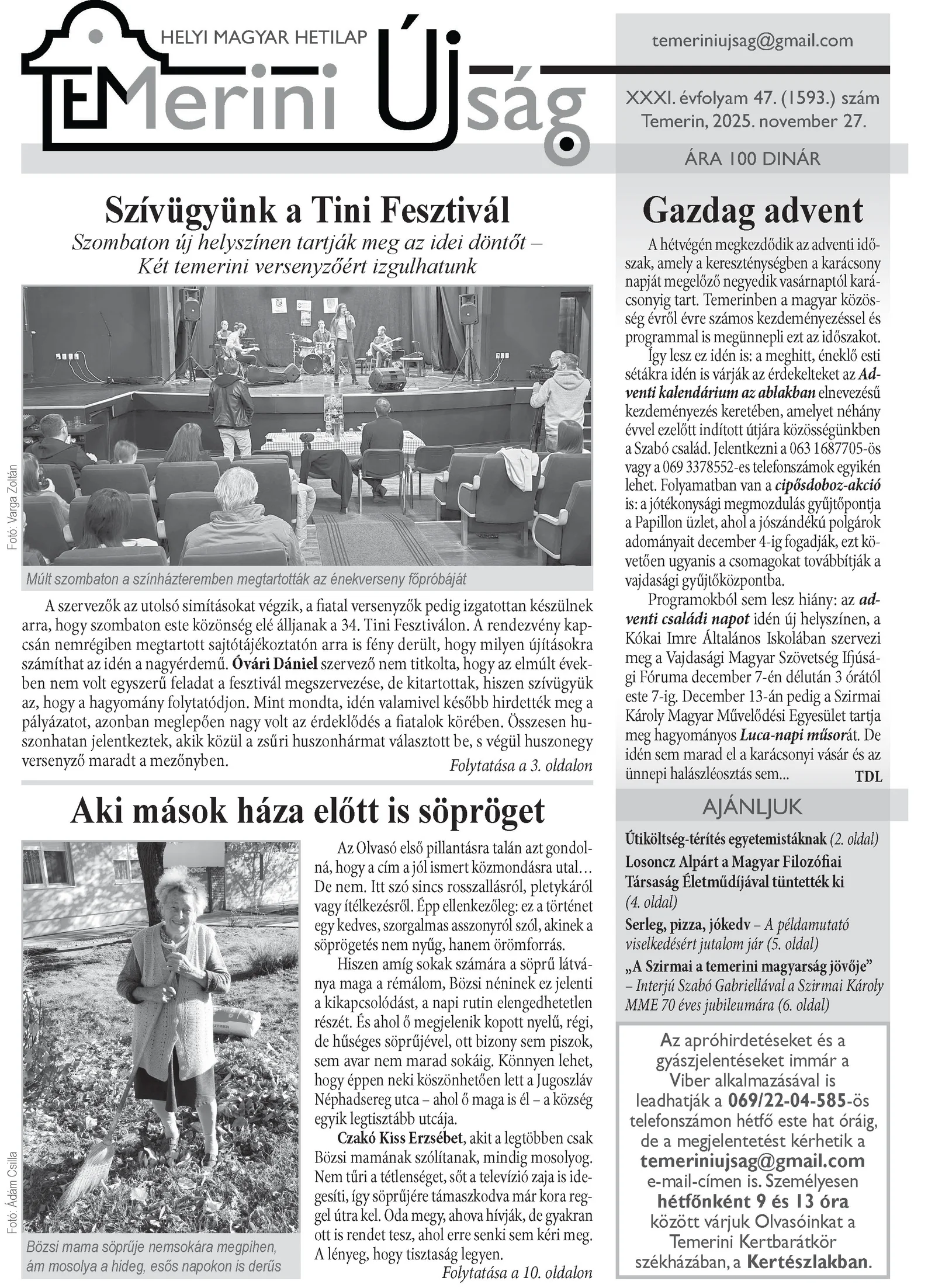 Temerini Újság, 31. évf. 2025. november 27. 47. sz.