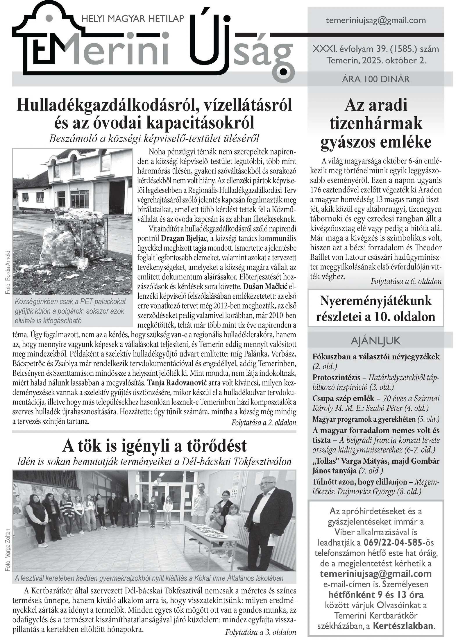 Temerini Újság, 31. évf. 2025. október 2. 39. sz.