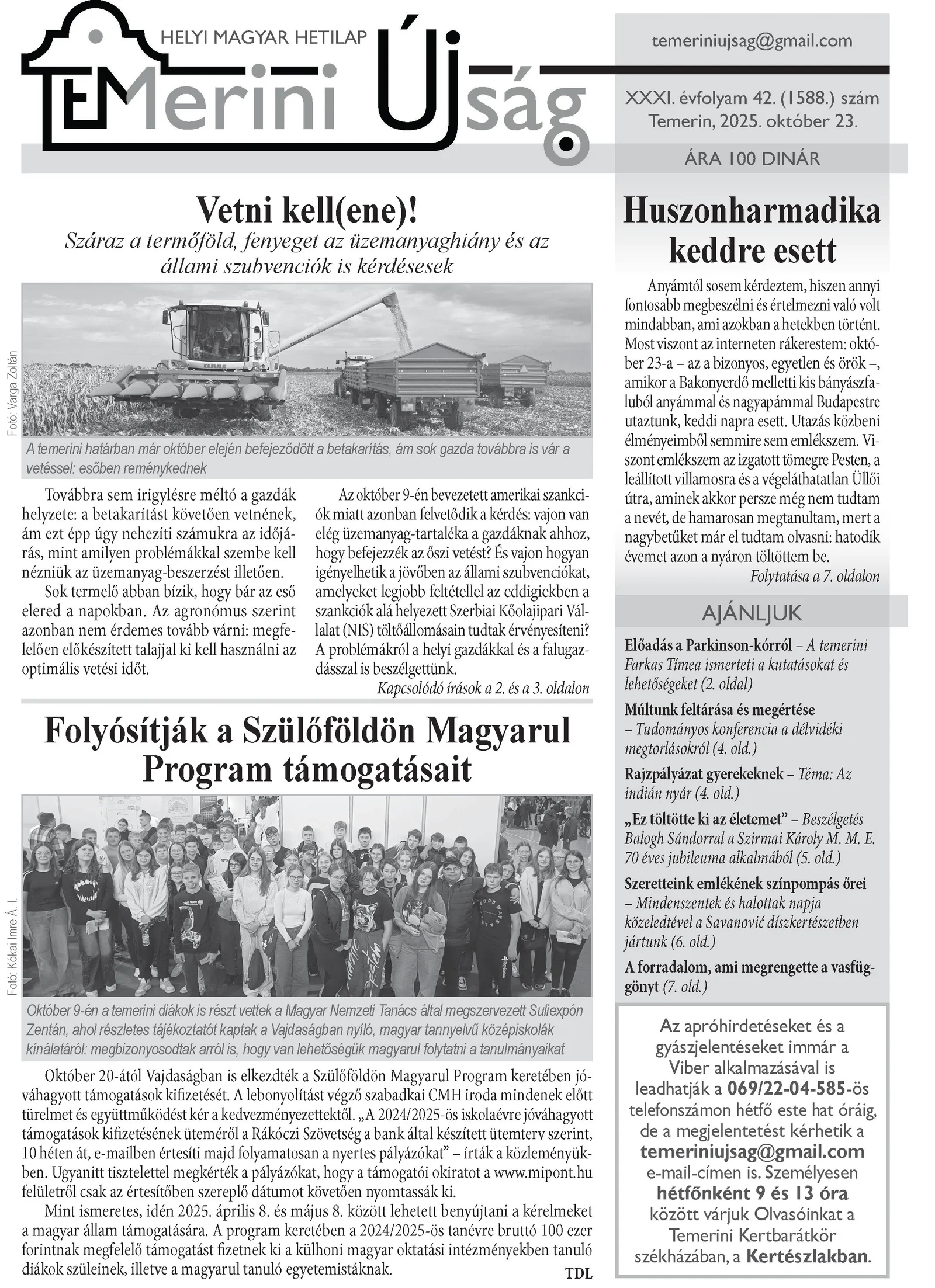 Temerini Újság, 31. évf. 2025. október 23. 42. sz.