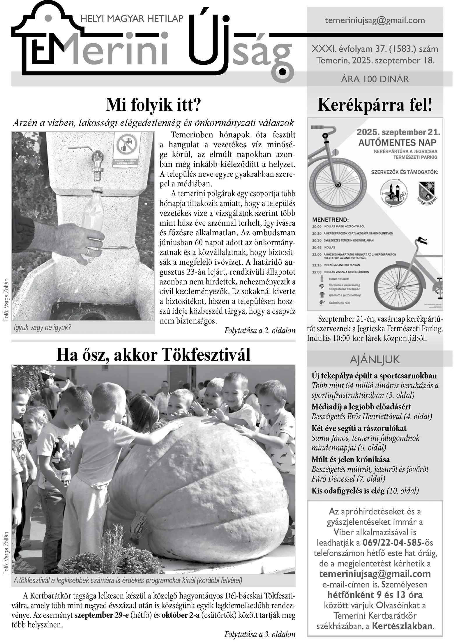 Temerini Újság, 31. évf. 2025. szeptember 18. 37. sz.