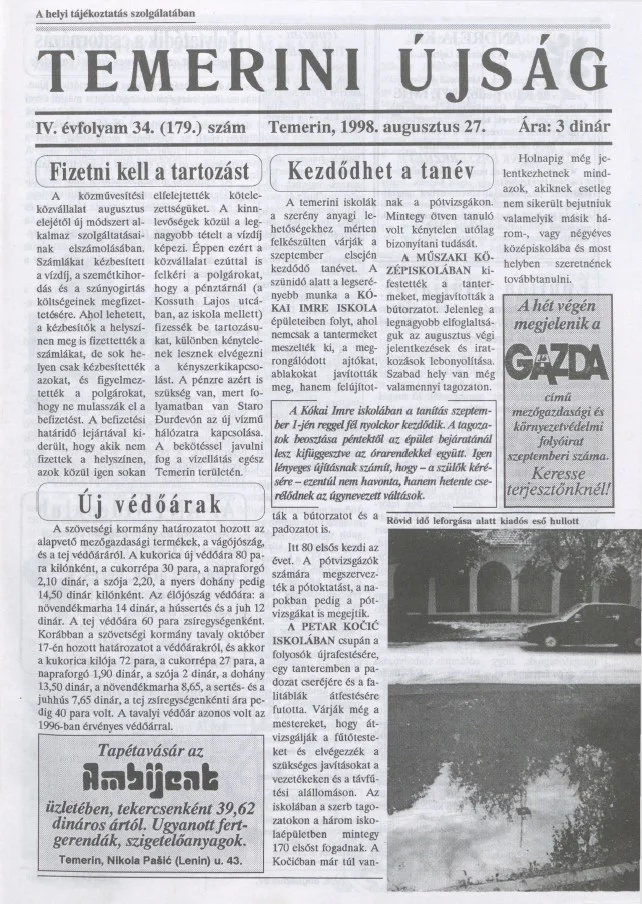 Temerini Újság, 4. évf. 1998. augusztus 27. 34. sz.