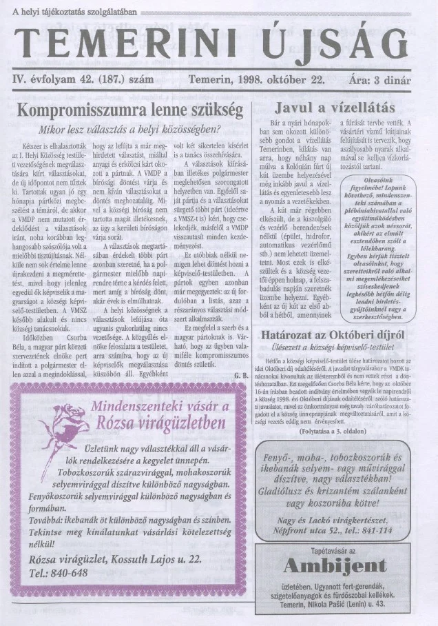 Temerini Újság, 4. évf. 1998. október 22. 42. sz.