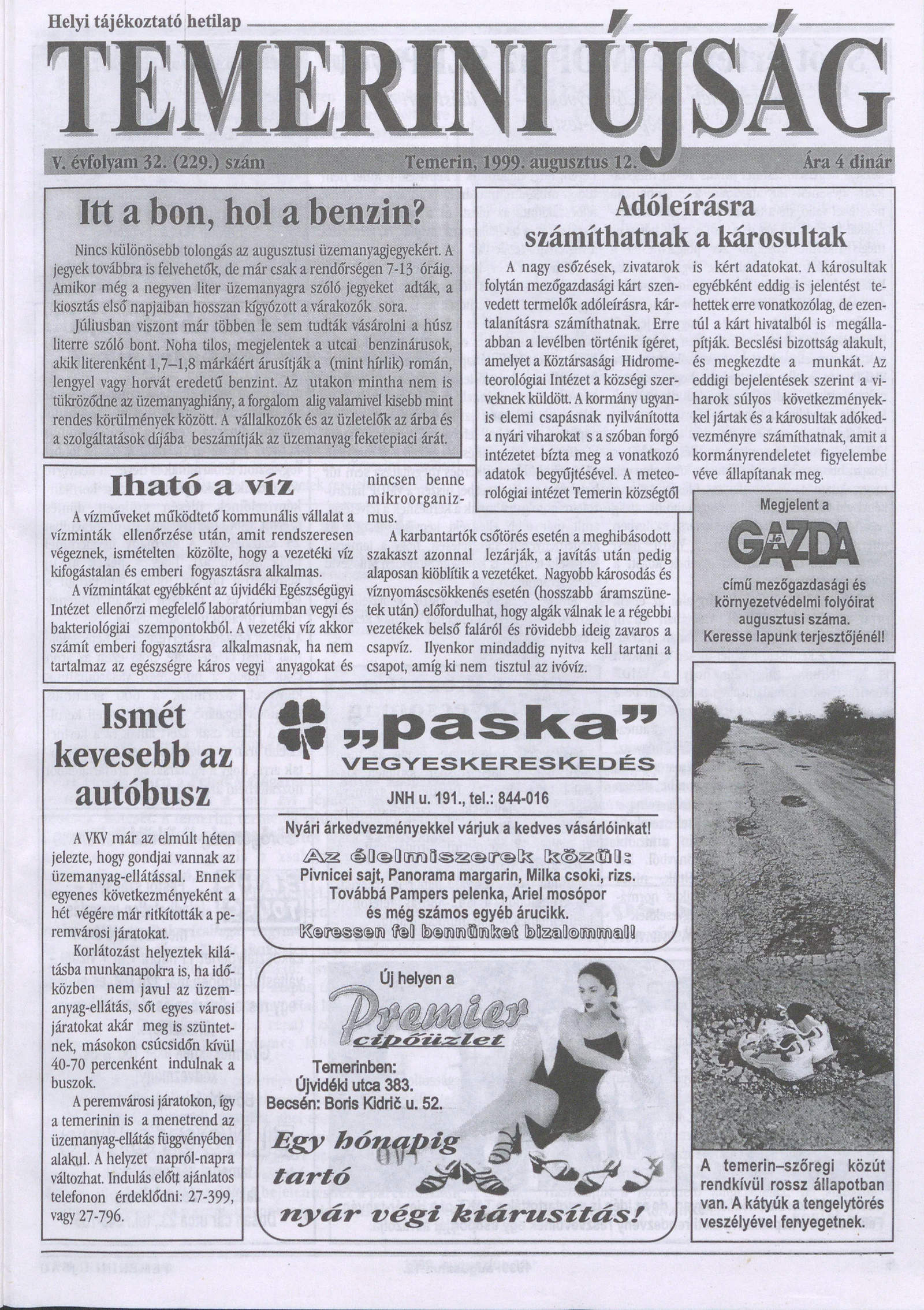 Temerini Újság, 5. évf. 1999. augusztus 12. 32. sz.