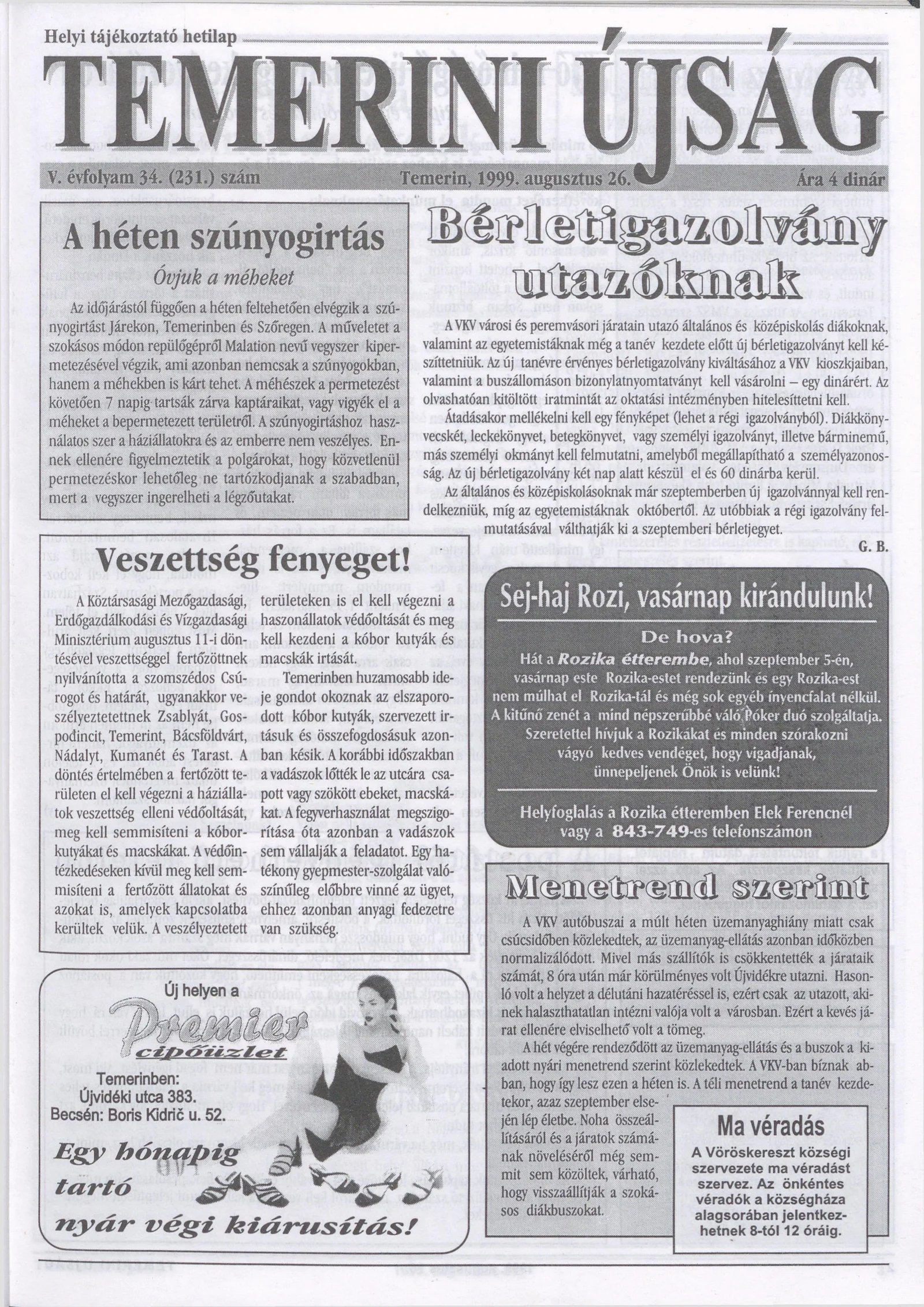 Temerini Újság, 5. évf. 1999. augusztus 26. 34. sz.